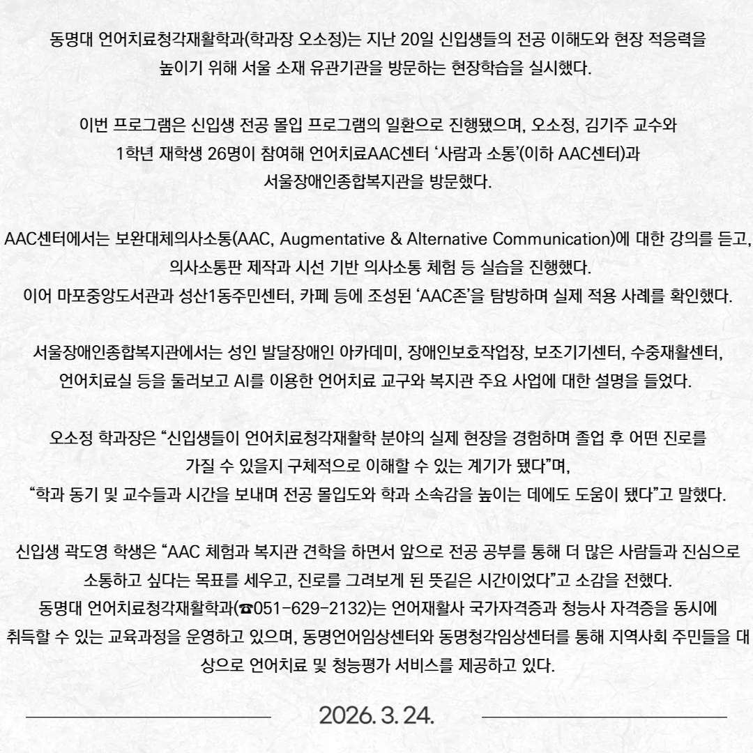 동명대 언어치료청각재활학과 신입생 기업 현장학습